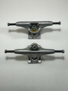 Attention contrairement a ce que certains sites peuvent expliquer le choix de la taille de vos trucks se fait aussi en fonction de la largeur de vos roues et du centrage des roulements.
