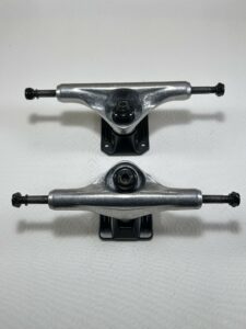 Attention contrairement a ce que certains sites peuvent expliquer le choix de la taille de vos trucks se fait aussi en fonction de la largeur de vos roues et du centrage des roulements.