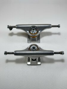 Attention contrairement a ce que certains sites peuvent expliquer le choix de la taille de vos trucks se fait aussi en fonction de la largeur de vos roues et du centrage des roulements.