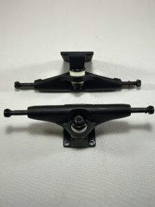 Attention contrairement a ce que certains sites peuvent expliquer le choix de la taille de vos trucks se fait aussi en fonction de la largeur de vos roues et du centrage des roulements.